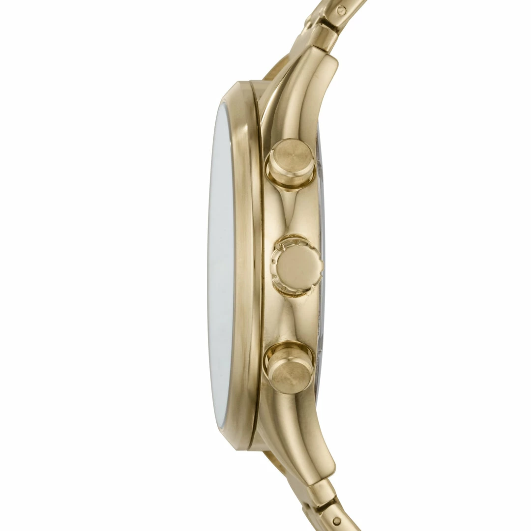 This 44mm Fenmore Midsize features a black satin dial with Roman numerals at the six- and 12-hour markers, multifunction movement and a gold-tone stainless steel bracelet. Designed exclusively for Fossil Outlet.