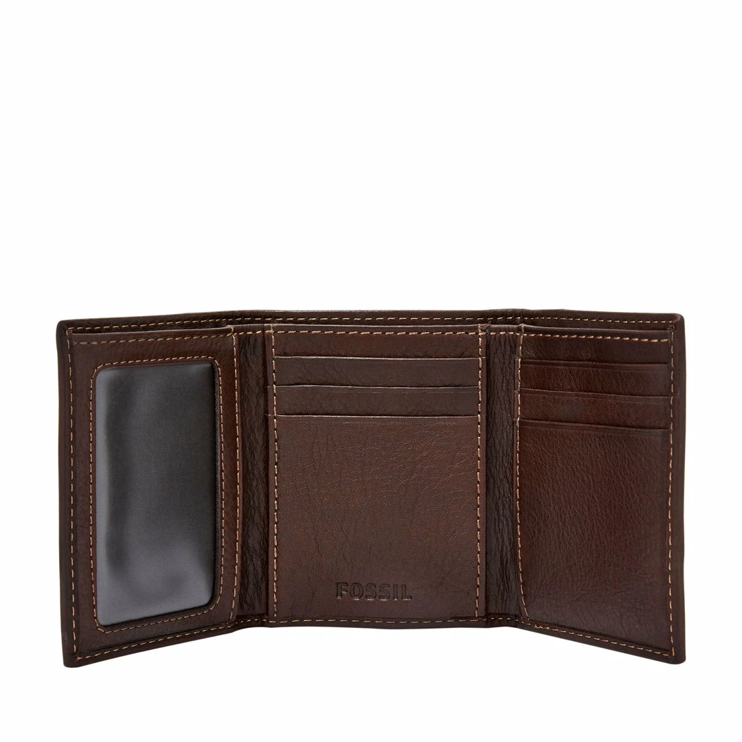 Smooth leather and an embossed Fossil logo give our Lufkin trifold a decidedly vintage look.