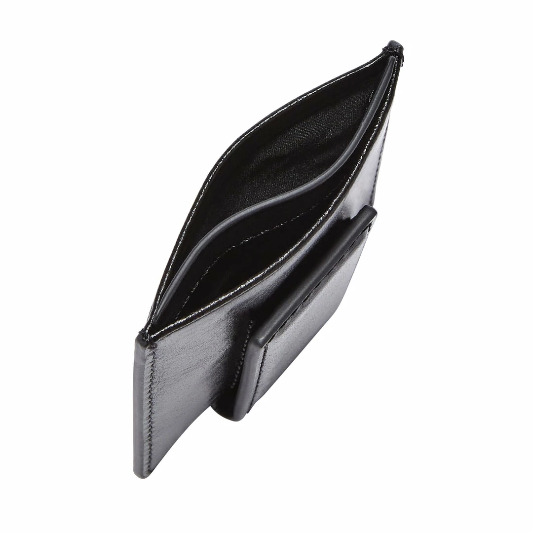 This leather card case features 1 magnetic bill compartment and 3 credit card slots.